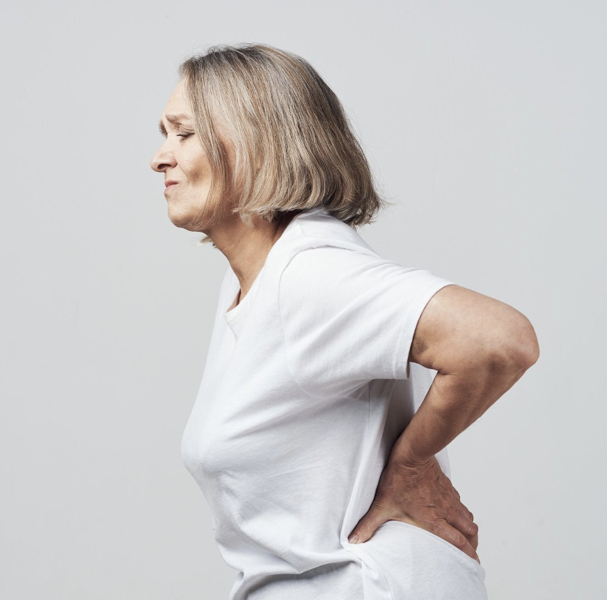 La pérdida de calcio y el desgaste de las vértebras son una de las causas de dolor de espalda por osteoporosis cuando debuta su presentación con una fractura. Las molestias se ubican en la línea media de la columna vertebral y puede llegar hasta las costillas o hasta las piernas si existe una irritación del nervio ciático.